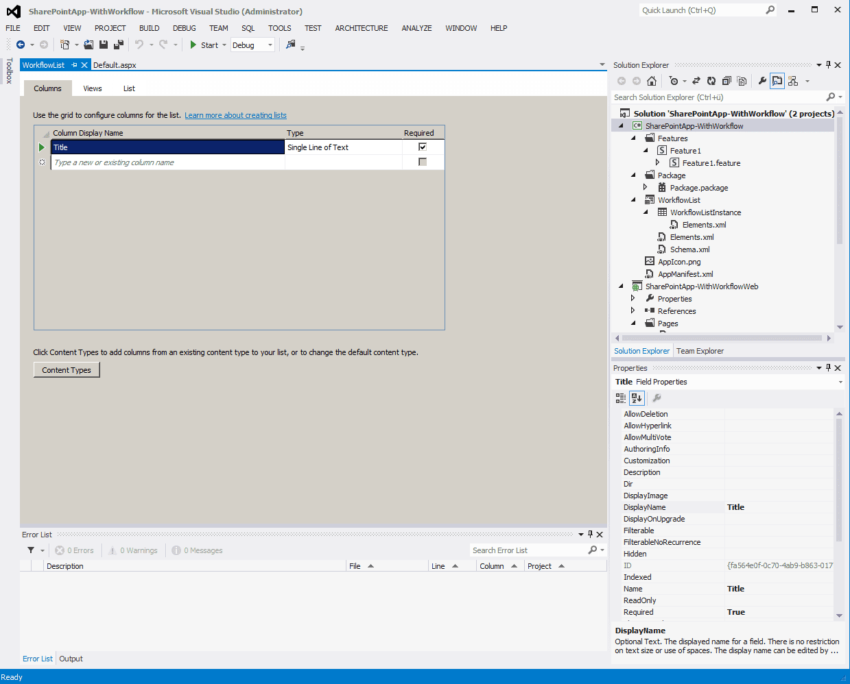 First of all we need to add a list to host the workflow by adding a new item of type “List” to the SharePoint AppWeb project.